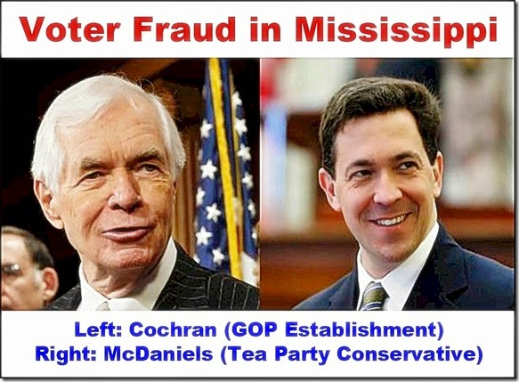 Much of America might actually be unaware of the obvious voter fraud that took place in Mississippi in the GOP run-off election between incumbent Senator Thad Cochran and challenger Chris McDaniel (a local State Senator). Senator Cochran represents the Republican Establishment and McDaniel was highly supported by the Tea Party Movement. With what you have read so far, who do you think committed the vote fraud and who do you think was the victim?