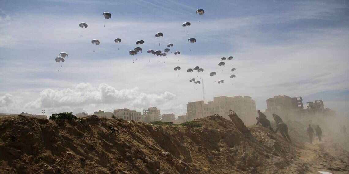 United States Air Force drops humanitarian aid to Palestinians in Gaza City, Gaza Strip, on Saturday, March 9, 2024. | Photo: Mahmoud Essa/AP [Israel Hayom Photo]